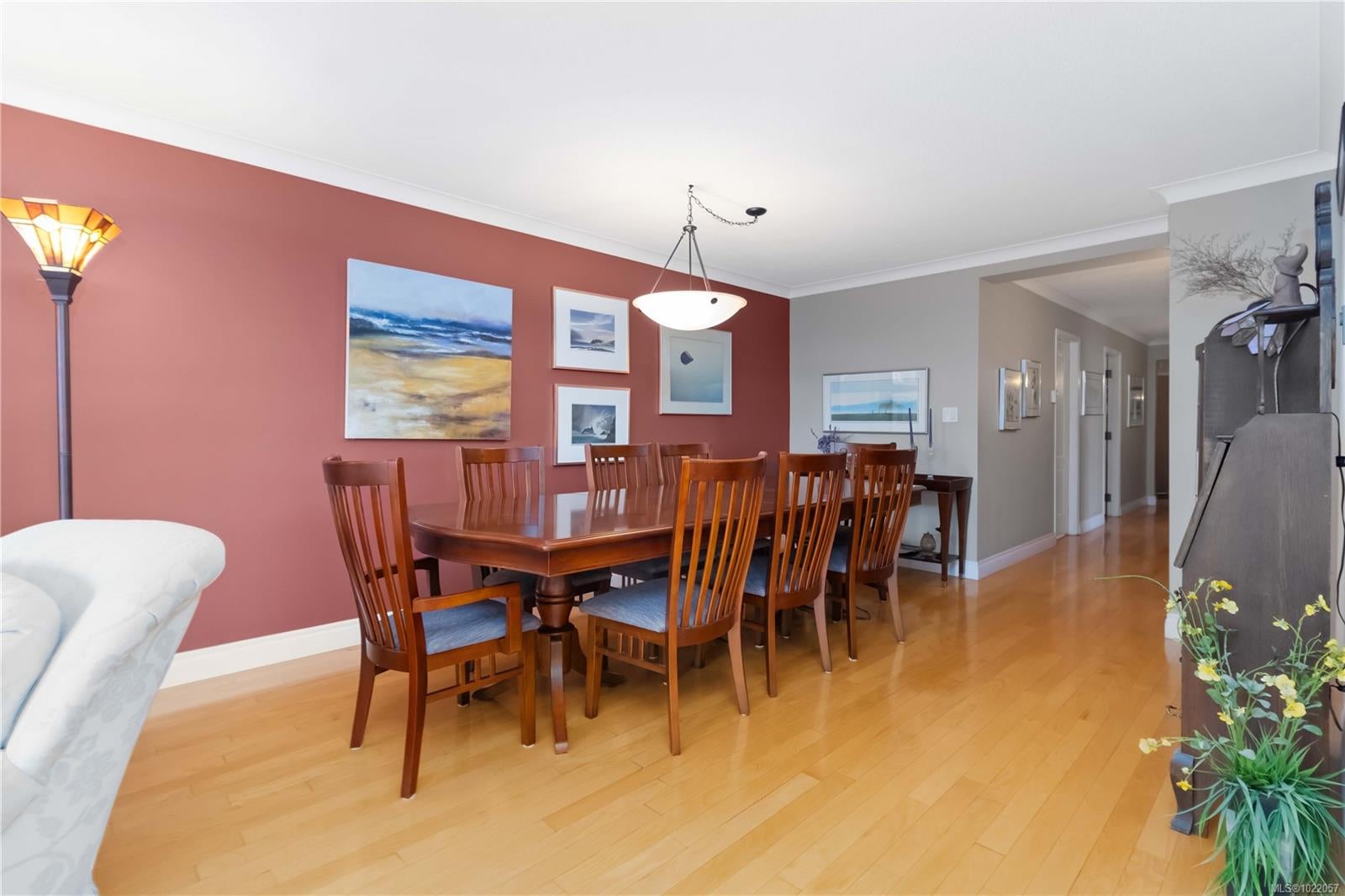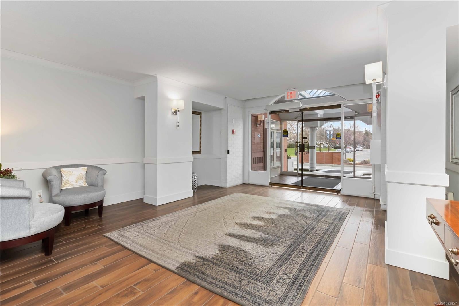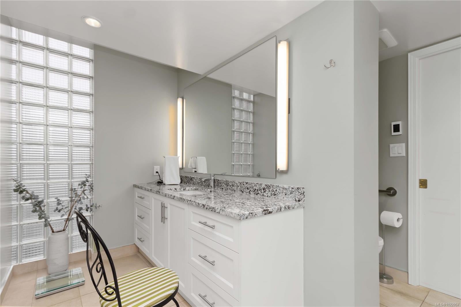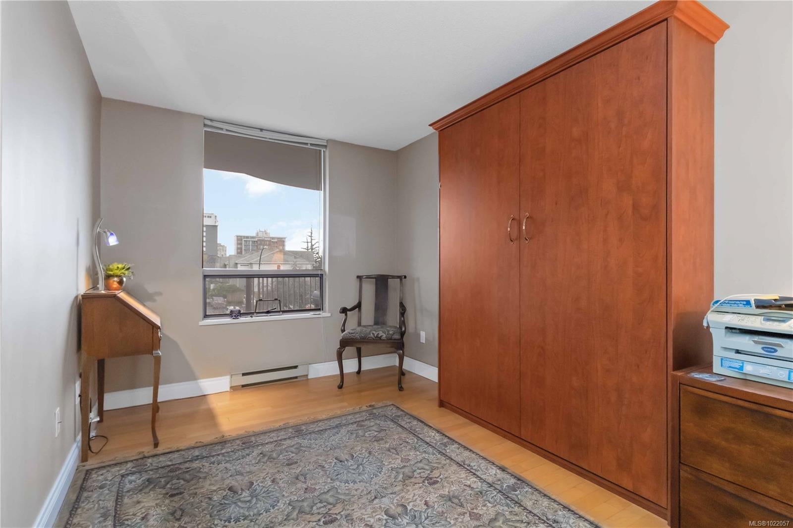 Enjoy gorgeous OCEAN views from this ideally located, spacious 2 BED & Den condo in Victoria's Harbourside. Perfectly positioned to witness spectacular sunsets & enjoy the action of the Inner Harbour, while appreciating the serenity & comfort this luxury building provides. Turn key, one level living with gleaming wood floors, a newer kitchen with quartz counters & maple cabinetry & updated bathrooms. The thoughtful floor plan includes a large dining area built to accommodate gatherings of any size, excellent separation between the primary bed & living area, a deck accessed from the kitchen & living area, separate laundry & lovely little touches throughout including; a seated vanity table in the ensuite, ample closet space & heated floors in the powder room. Underground parking & well appointed lobby & just a short stroll to all that makes the Garden City so desirable; Fisherman's Wharf, Ogden Point, The Empress and a plethora of shops & services.